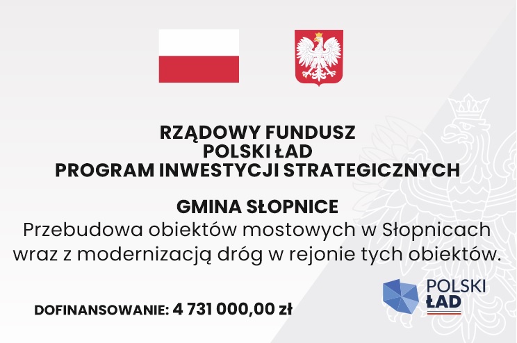 NAZWA ZADANIA: PRZEBUDOWA OBIEKTÓW MOSTOWYCH W SŁOPNICACH WRAZ Z MODERNIZACJĄ DRÓG W REJONIE TYCH OBIEKTÓW